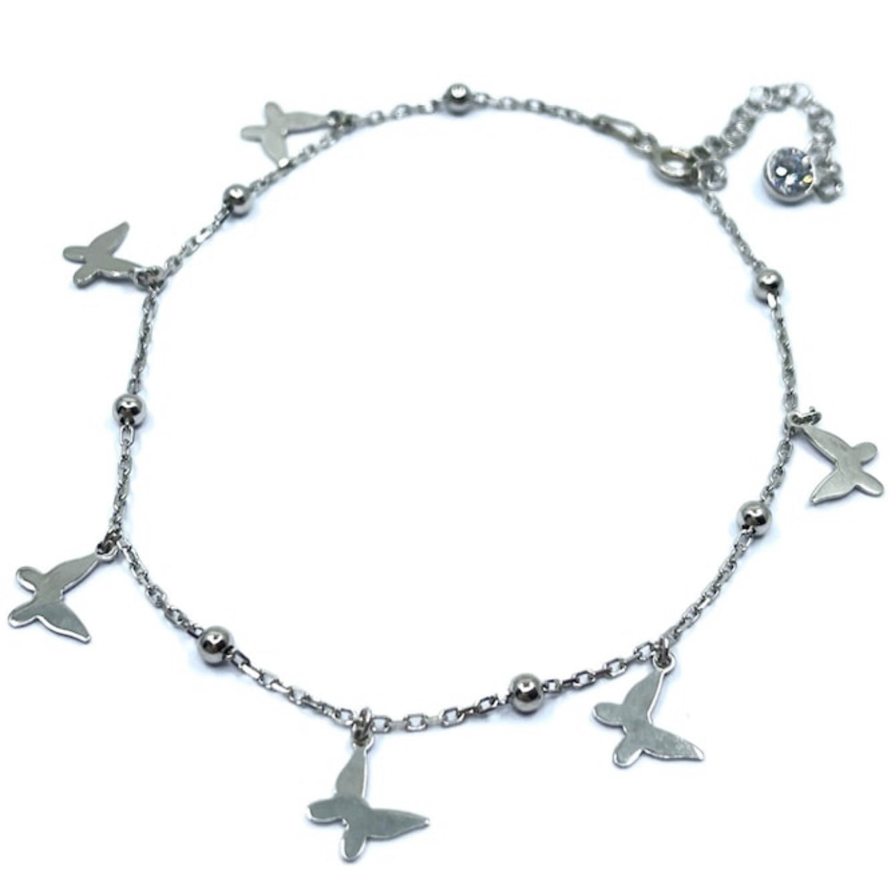 Bratara de picior din argint 925 cu fluturi de 7 mm, lungime ajustabila 20-25 cm