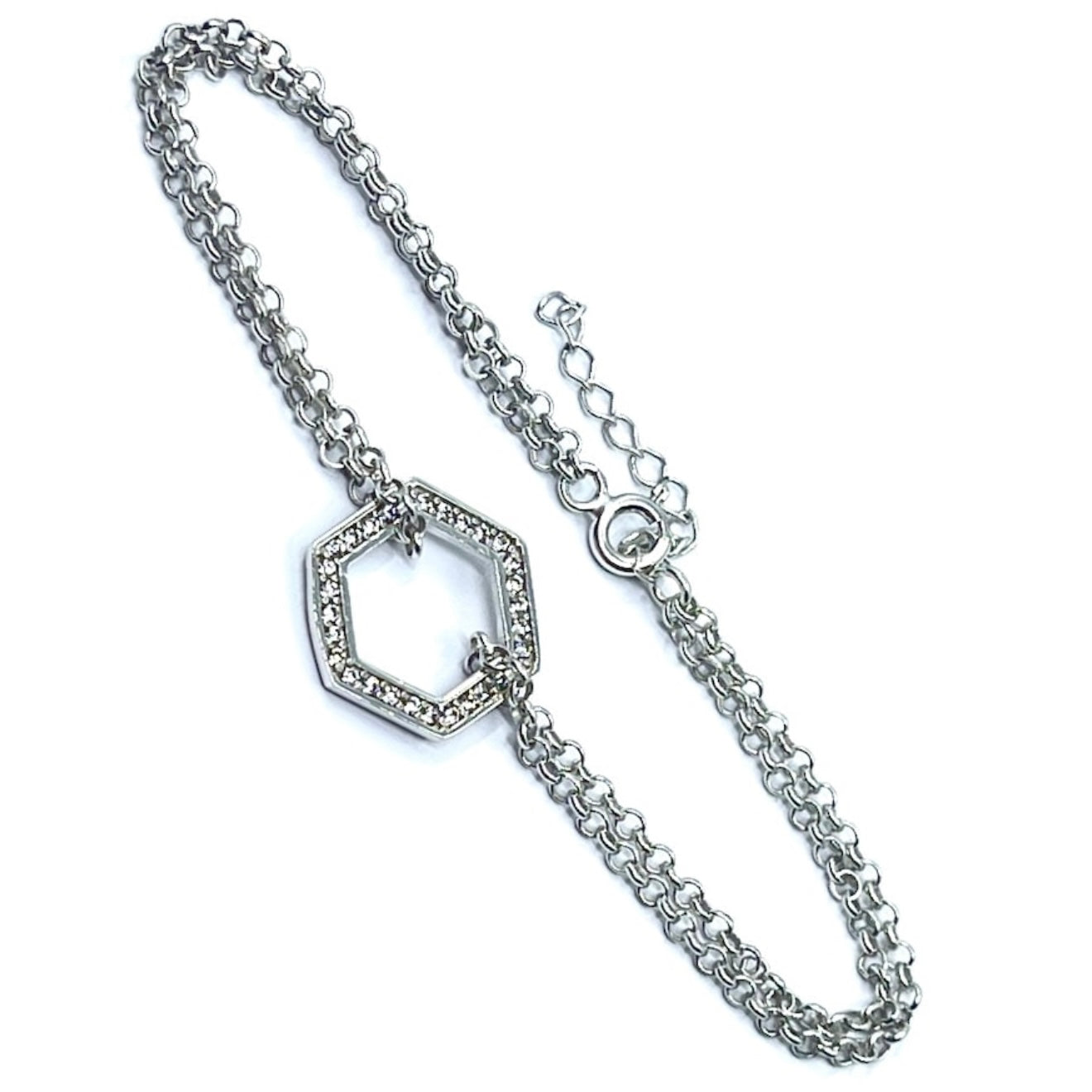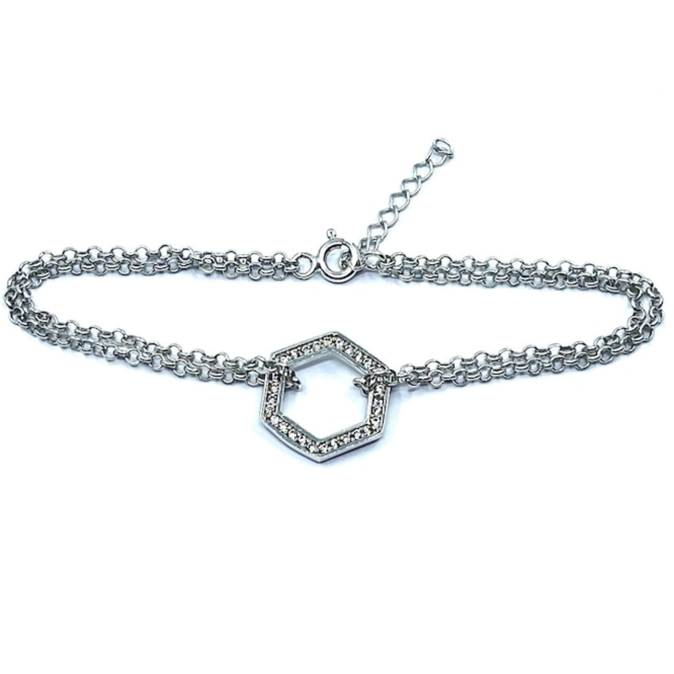 Brățară dublă din argint 925 rodiat, dimensiune ajustabilă 16-19 cm cu accesoriu hexagon cu zirconiu de 15/15 mm.