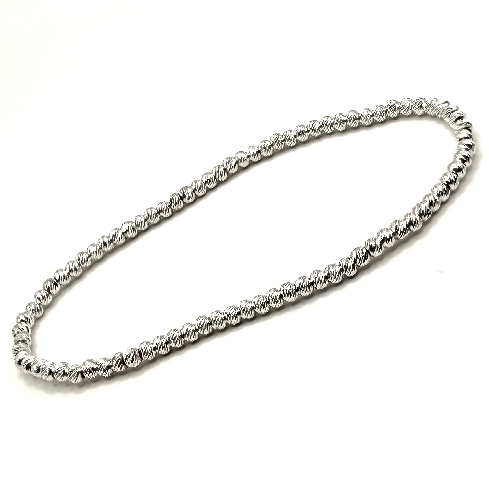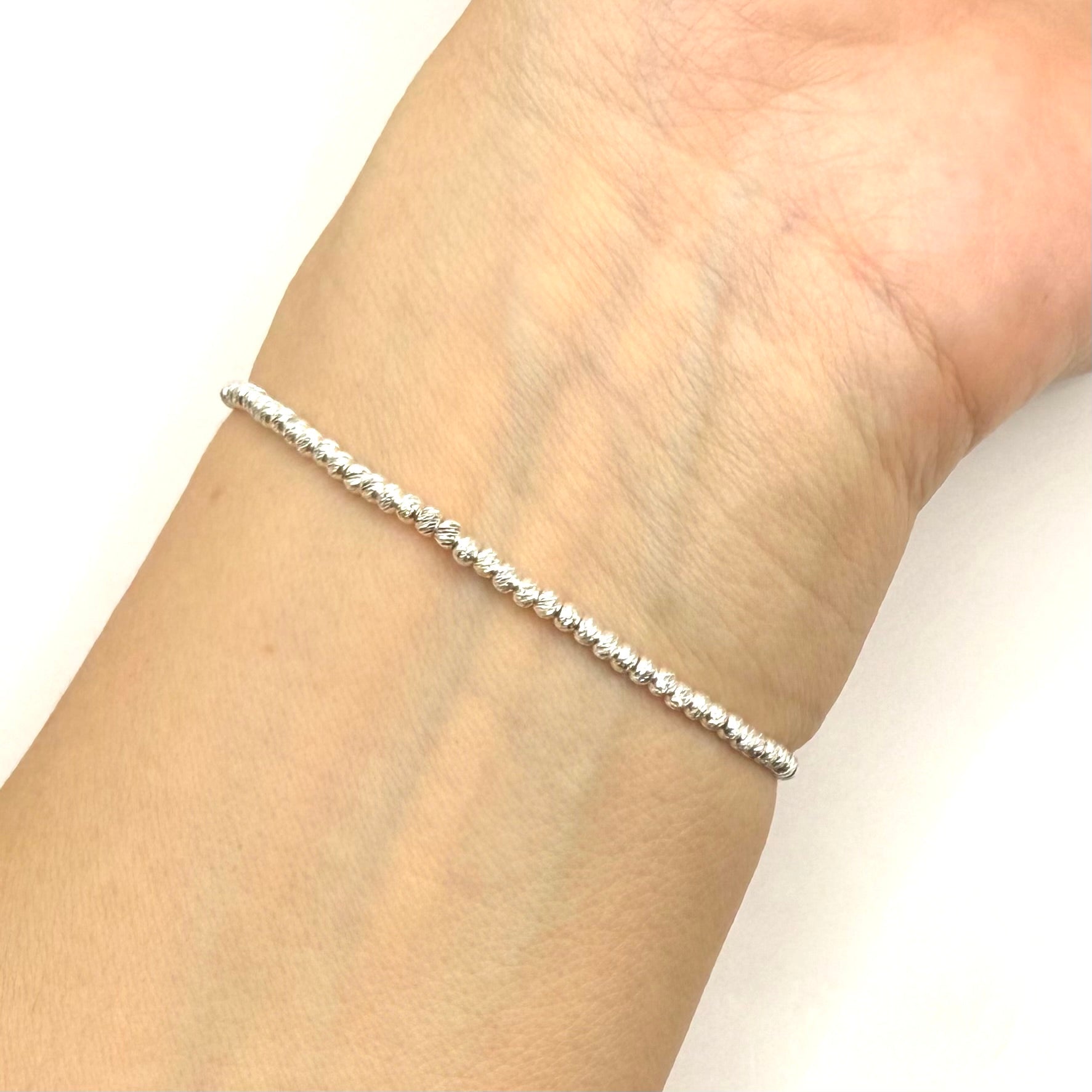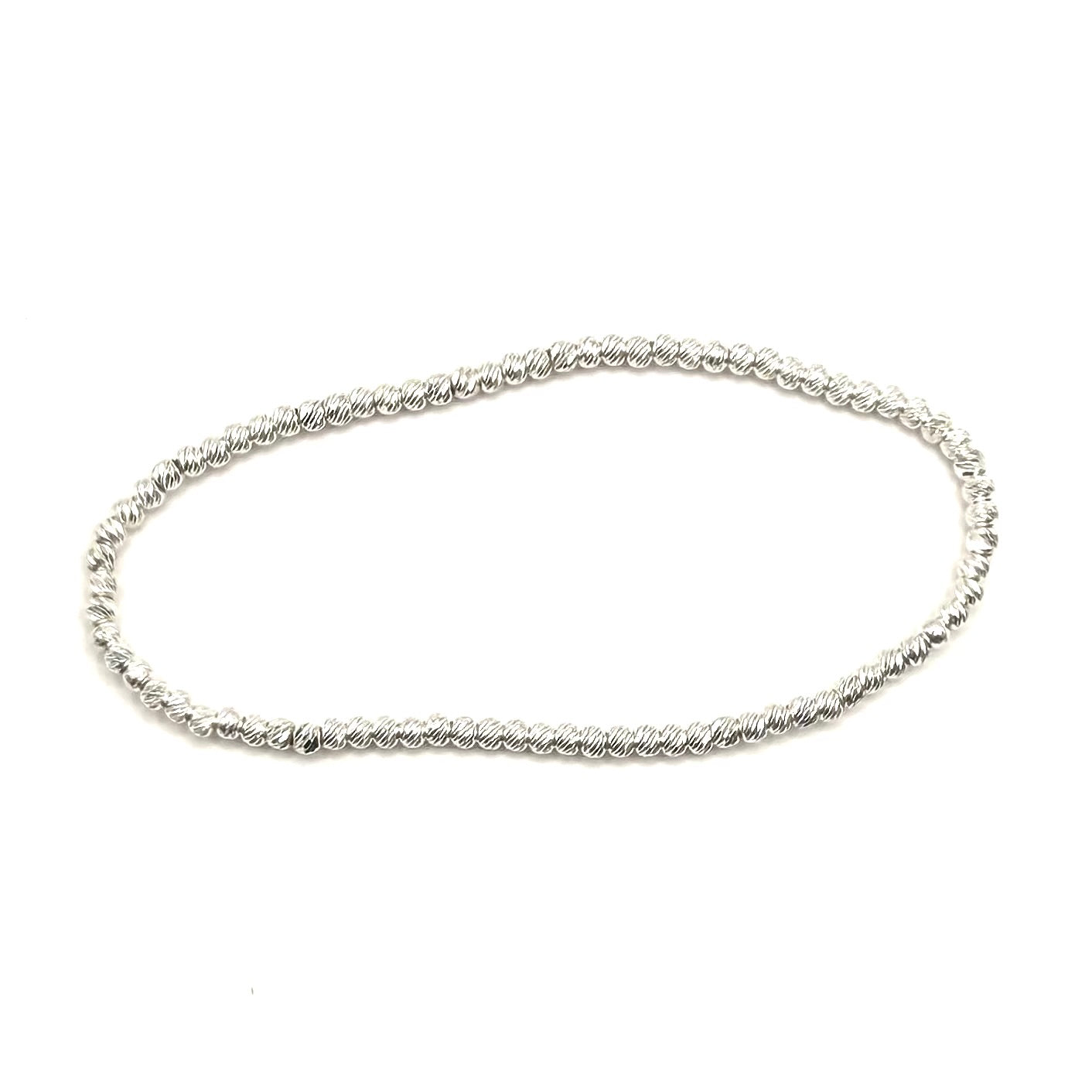 Brățară pe guta elastica de 16.5 cm cu bile fatetate de 2 mm din argint.