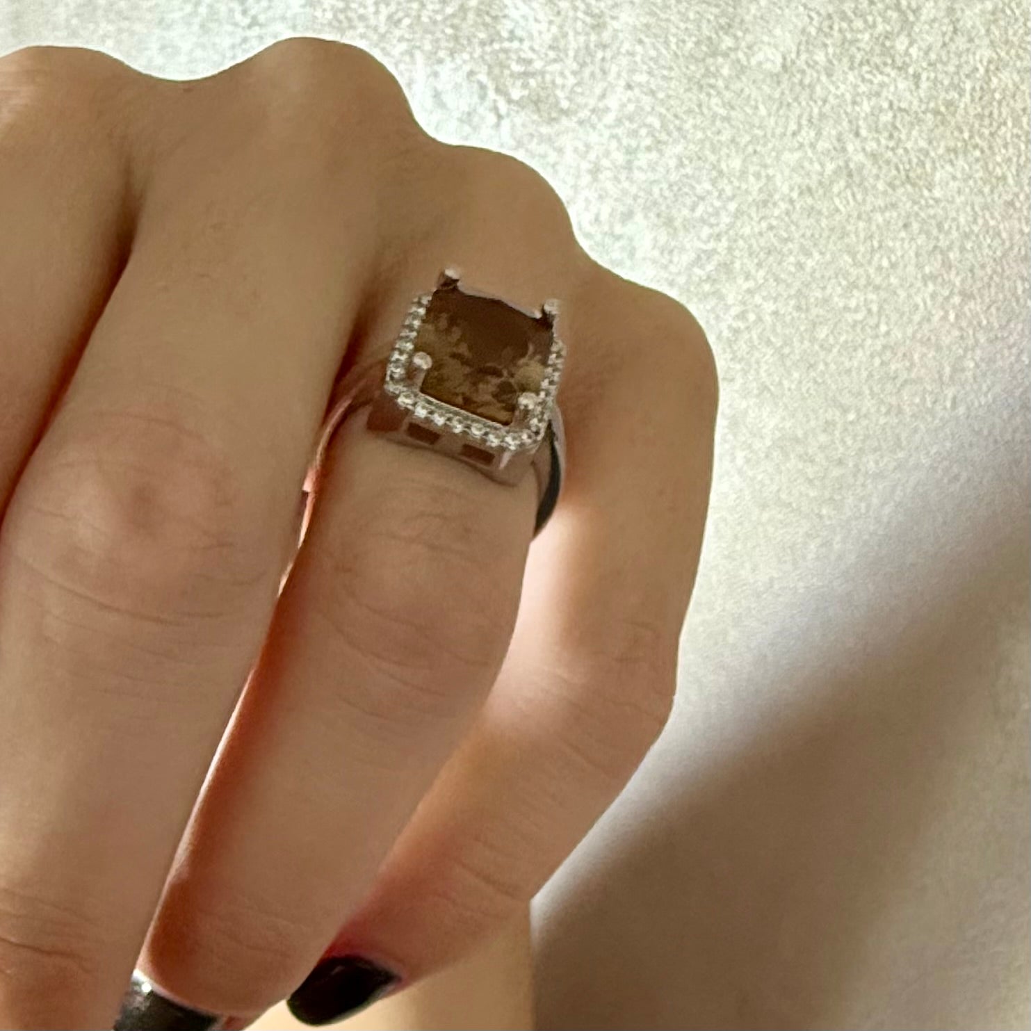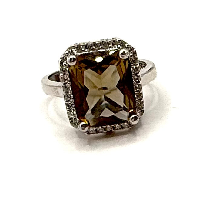 Inel din argint 925 cu zirconiu și Zultanit ( piatra care își schimbă culoarea în funcție de lumina: coniac, kaki, mov, roz) de 12/15 mm, dimensiunea 8(18 mm diametru).